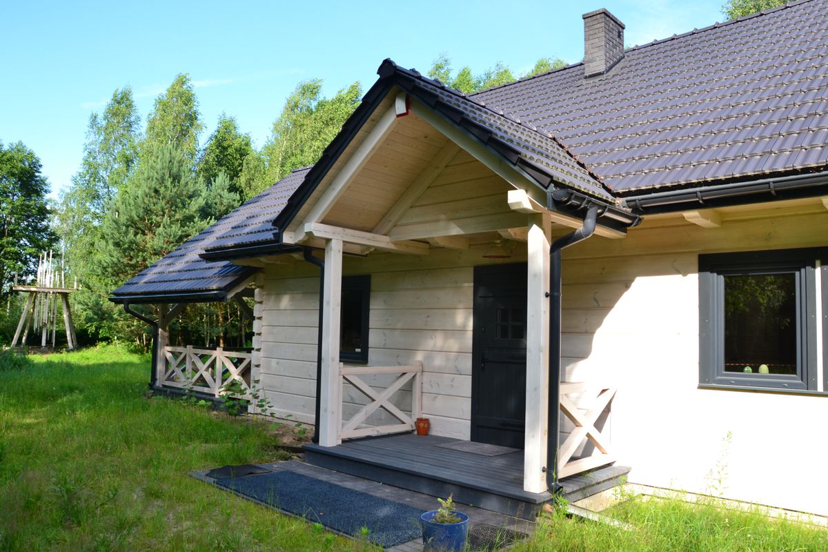Impregnacja: cały dom zabezpieczony impregnatem do drewna konstrukcyjnego Boramon C30 z zewnątrz dom pomalowany 2x lazurą wybielającą Remmers MSL45 + 1x Remmers MSL45 UV+ wewnątrz 1x lazura wybielająca Remmers MSL45 + 1x Remmers MSL UV+