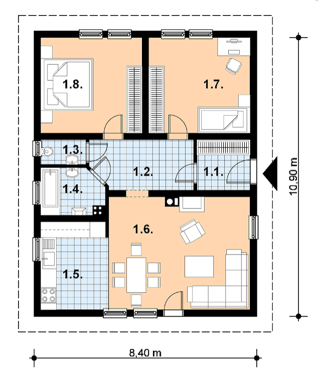 Pokrycie dachu: dachówka ceramiczna typu Marsylka.
